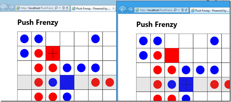 The last sample I’ll mention today is my little game, Push Frenzy. When you open and run the project (make sure PushFrenzy.Web is the startup project), you should get this screen in IE 10: